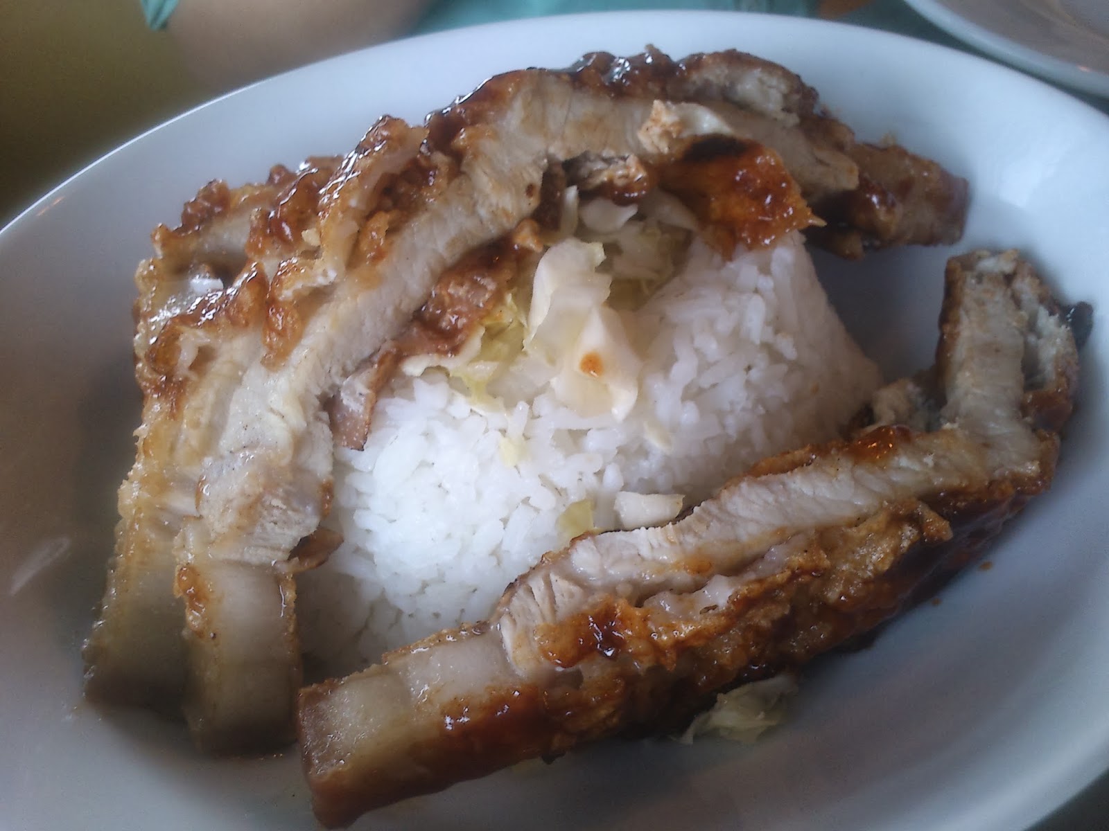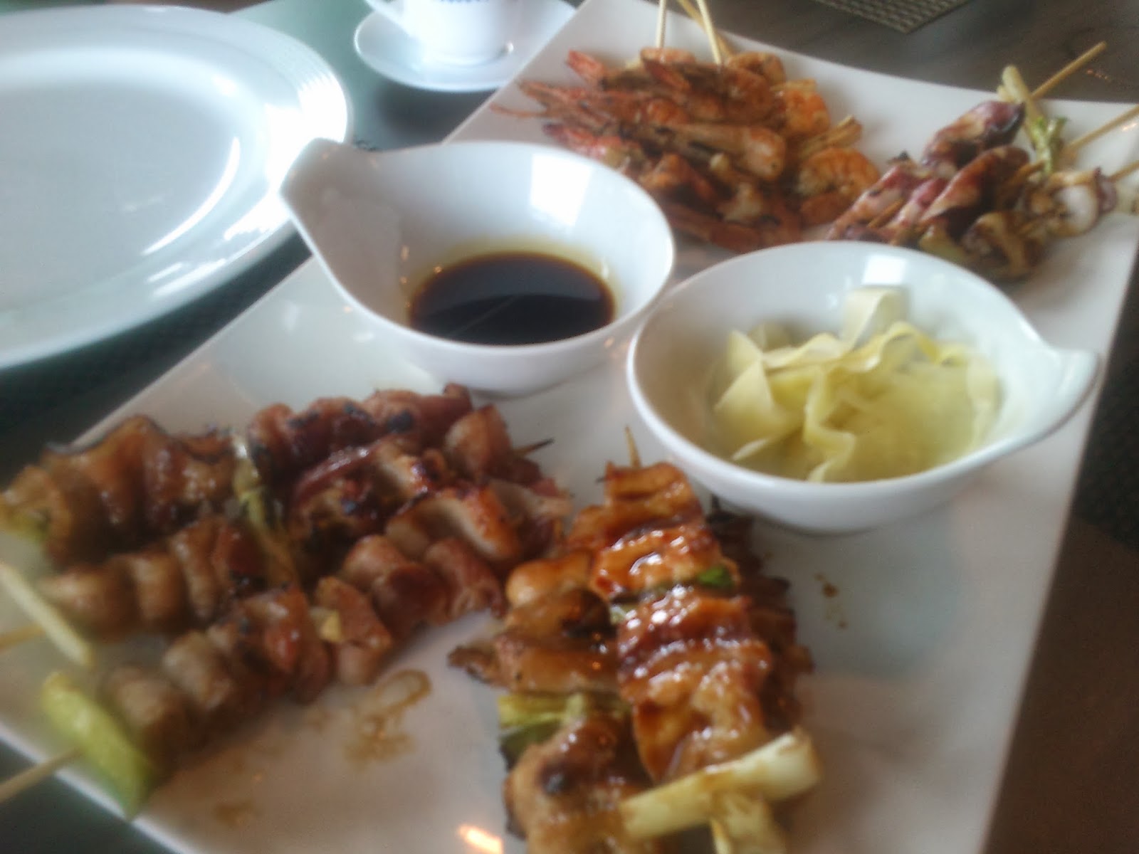 We met up with my sister’s college friend here in Ayala past 11 in the morning and decided to try eating at Ullis. We were lucky enough to get seated and order before a large group of office employees came to claim their reservation. Anyhow, our group ordered a Tori Tori platter, a dish composed of three sticks of chicken, squid, pork bacon, and shrimp; Chops, composed of four slices of pork on top of a heap of steamed rice with fermented cabbage; and Combi Pork Platter, made up of Char Siu Pork (Chinese BBQ pork that looks like pork ham with sweet glaze) and Siu Yuk Pork (Crispy Roasted Pork Belly)