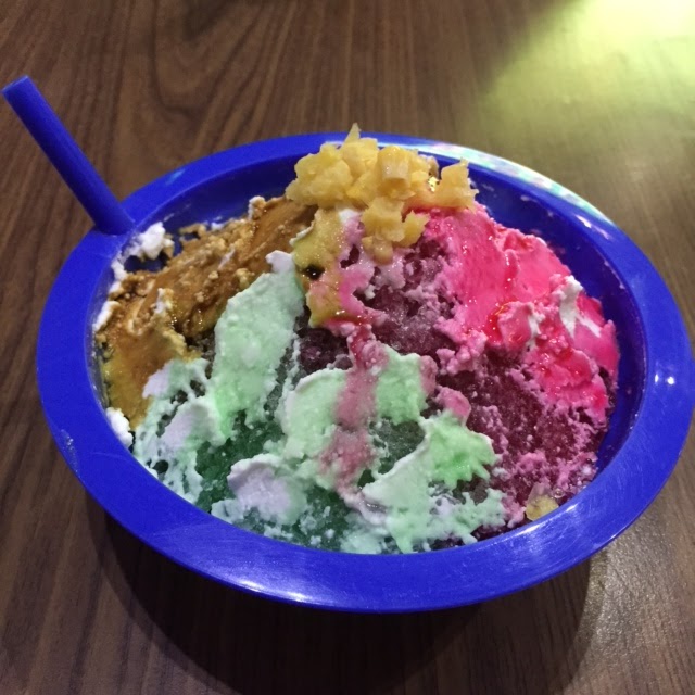 To end the meal, we ordered iced kachang, which is their version of the local halo halo with coconut milk and pandan extracts.