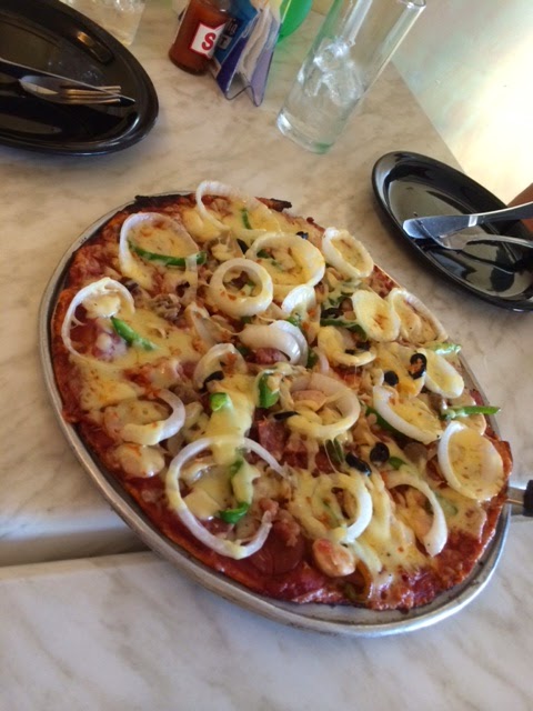 The food here is cheap. Less than 300 for a 10inch thin crust pizza? Yes please, sign me up! To save even more, we got ourselves the smallest party pack, inclusive of a 2 liter bottle of soda, a large plate of carbonara pasta, three pieces of chicken with slices of home made mojos, and of course, a pan of their signature pizza flavors.