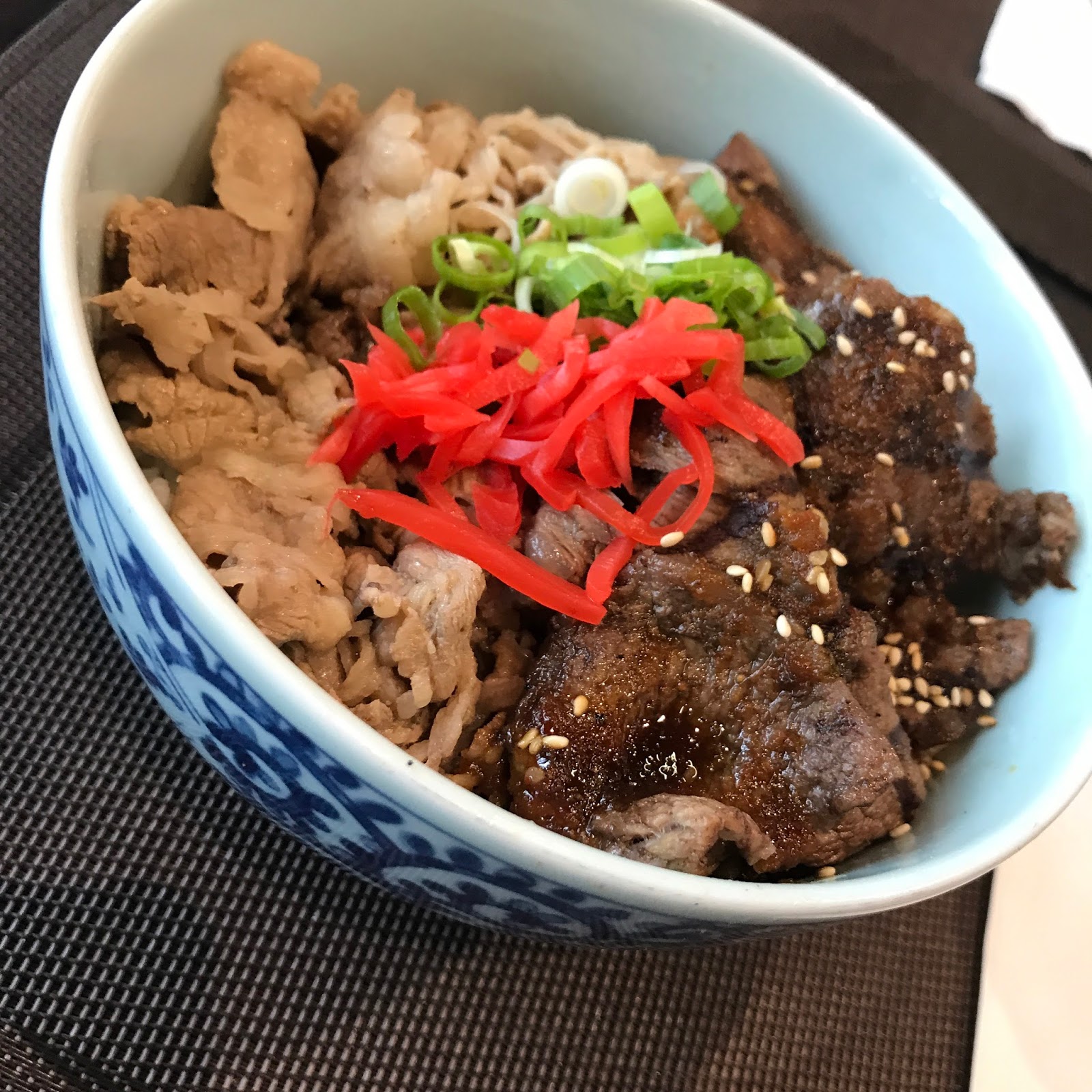 Stewed tender beef bacon slices with white onion on a bed of rice and topped with pickled ginger, that’s how I remember a good bowl of gyudon should be. As a sister company of Chosun Korean BBQ, this restaurant offers a few more fare other than beef bowls, it also has karubi, chirasi, kimchi, gyoza and a few nigiri. I’ve visited this place thrice and always came out satisfied. Although the place is small, the service is fast and the food tastes better than what other restaurants would give you for the same $.