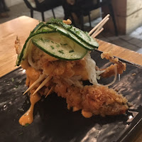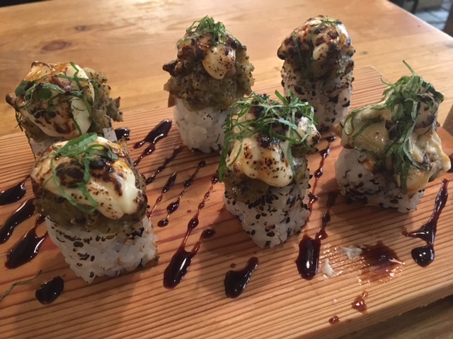 Oysters are normally deep fried or eaten raw. Then comes Oyster Aburi Maki, an aburi topping for a maki, is just plain genius. Not only it is a mouthful, but when consumed in the right way, it gives exploding layers of flavor and texture in your mouth. The creaminess of that torched Japanese mayo hugging chopped oysters passing on its smoky flovor is a nice contrast to its subtle and sweet flavor. The rice, you’d expect to downplay the taste does no such thing when drizzled with teriyaki sauce and the crisp cucumber and sweet kani inside is your hold to the traditional maki.
