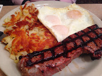 the long line outside this restaurant has always made me curious to try this place. it has great reviews too so me and my friend ventured out to have a very early breakfast at this cafe. its menu has a wide selection of american breakfast items. i chose the fresh lox and bagel which came with eggs and pancake for additional cost. it also came with some veggies, not so salty capers and cream cheese. i enjoyed the lox and bagel but was only able to finish half of the bagel since i had the pancake for dessert. my friend ordered bill’s steak and eggs. the steak wasn’t that remarkable to me but it was tender and juicy.