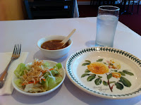 it was accidental that i ate at this restaurant since i had a hard time finding parking space close to an organic mexican restaurant i wanted to try out. this restaurant has a mix of burmese and chinese cuisine. i ordered their chicken curry lunch special. it came with hot and sour soup and salad with crispy noodles for starters. i liked the sauce which came with the salad. it’s sweet and had a hint of sour taste. i was surprised they had samosa in their menu. i later learned burmese cuisine had been influenced by india. the samosa did not look exactly like the indian samosa but it tasted close. it did not