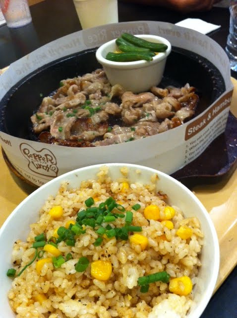 Pepper lunch is a popular Japanese sizzling place in glorietta 5. You can see a slightly long line outside the restaurant between 11 am until 1 pm for their food. Just at the entrance, anyone can take in the scrumptious smell of meat and fish and hear the sizzles of prepared dishes.
