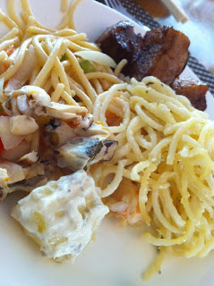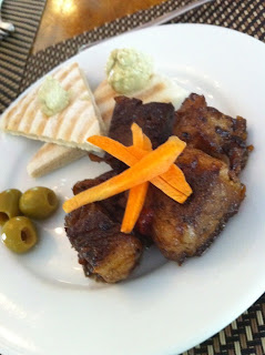 To begin the meal, I had the privilege of sampling most of their appetizers of pita and Greek dressing, paired with a steaming broth of chicken. Their scrumptious salpicao, a dish composed of cubed beef sirloin or tenderloin, lots of minced garlic, olive oil and various seasonings was next to be tasted. Soft, heavenly, and heart pounding! It tasted just like meat simmered in coconut milk and tomato sauce, only better.