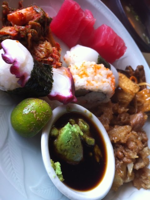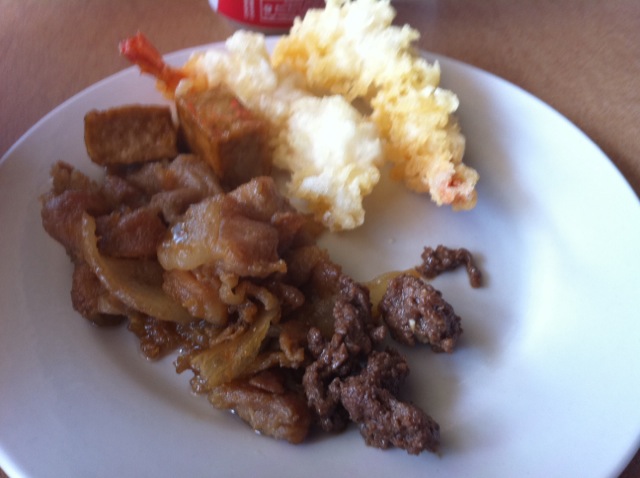 The food is ok, although when we visited, there weren’t any salmon at all. They have sukiyaki, yakiniku, miso soup, tempura, some sashimi and rolls of sushi.