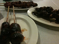 We, on the other hand, sampled their roast beef, pork ribs, broiled white marlin and sticks of chicken liver, gizzard and spicy sausages. There were a lot of people here, and noticeably quite a number of Koreans. Our wait time was short, and immediately we tried the food that we ordered. The tender beef calf was presented with a special sweet sauce. Soup arrived, and so did the rest of our orders. It was delicious. The way they cook their meat is splendid, and I can tell that over the years of serving grilled dishes, they were able to master how to cook tender and juicy meat that’s well done and soft. I highly suggest this restaurant for those people who love grilled food.