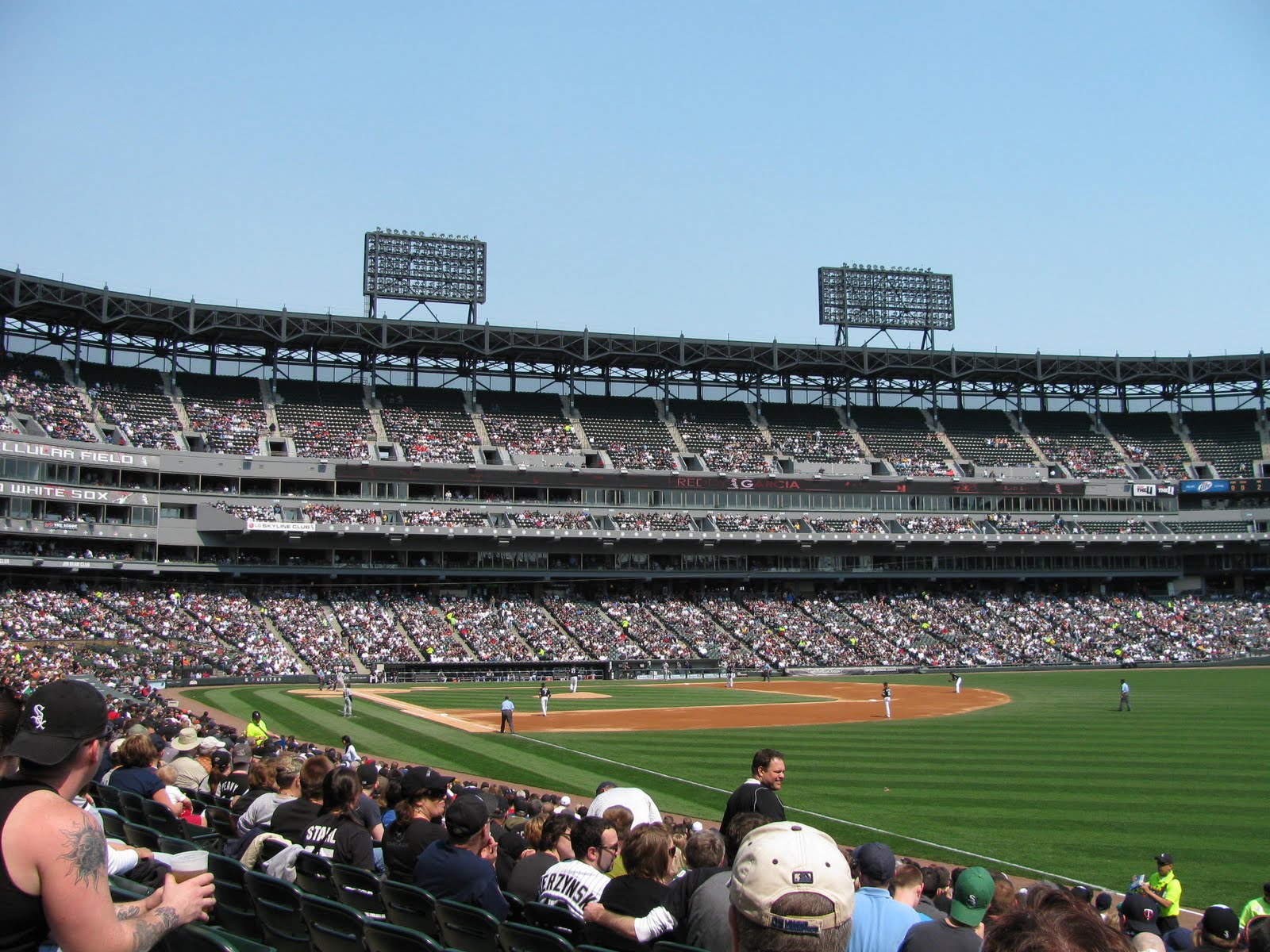 i had my first time watching a live baseball White Sox game last Saturday. the crowd was fun. some men who looked almost drunk were cheering loudly and dancing under the heat of the sun. the team lost that day but I enjoyed the whole experience. i would not forget to mention eating bobak’s bratwurst and nachos while watching the game.