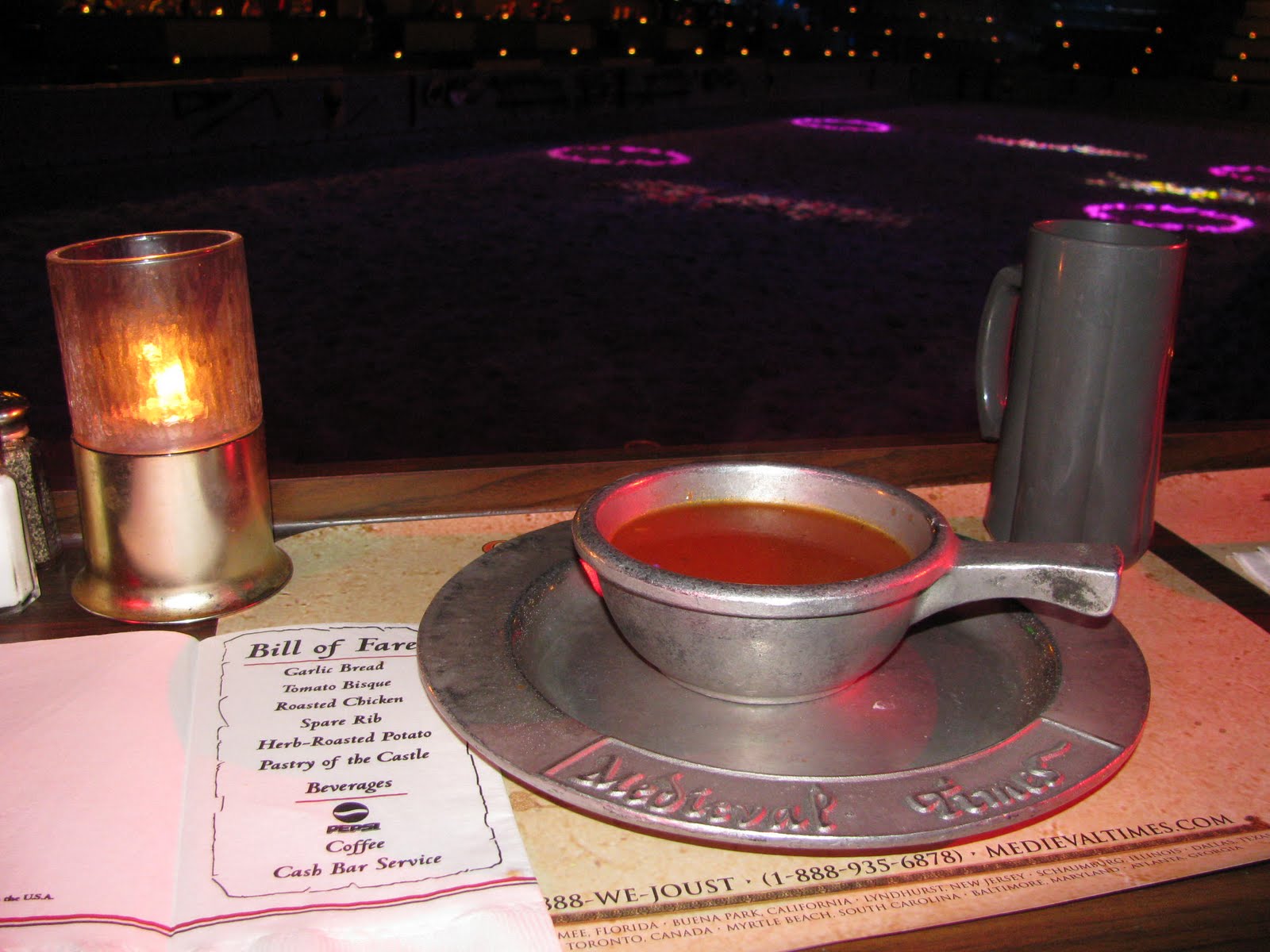 i had an interesting experience of dining in a castle while watching knights jousting. no knives and forks were served with the food. we had to eat with our bare hands.