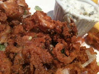 For starters we got the calamari which was cooked to perfection, although a bit salty I might admit; squeezing the lemon on top did make a difference though. The ranch dip was uninspiring, but then again, I never really liked ranch to begin with. [to be updated by K]