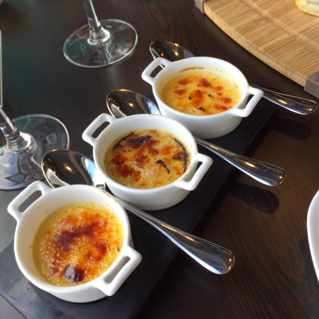 What people may not believe is that this place also serves a variety of good food that not only is decently priced, but also delicious as well. I was at first hesitant about the quality but after coming back twice, I was convinced that even picky eaters will not be disappointed. My sister and I had the chance to sample their crispy pork bits meal and their interpretation of Pho to go with their trademark wine samplers, which is, six different kinds of wine. You also have the option to get one of their cheese and deli platter with the sampler, which features enough cheese and cold cut slices. To close the meal, we also had the pleasure of trying the Durian Creme Brulee and the sumptuous Ube Turon that really hit the spot.